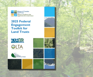 Ontario Land Trust Alliance connects and advocates for Ontario land trusts nationally, through our joint work with the Alliance of Canadian Land Trusts. Our 2025 Federal Engagement Toolkit is a joint project of the ACLT, OLTA, the Land Trust Alliance of BC and the Réseau de Milieux Naturels Protégés in Quebec. It offers guidance to land trusts and conservation organizations in connecting with elected representatives to build political will to support land trusts and advance community-based land conservation across Canada.